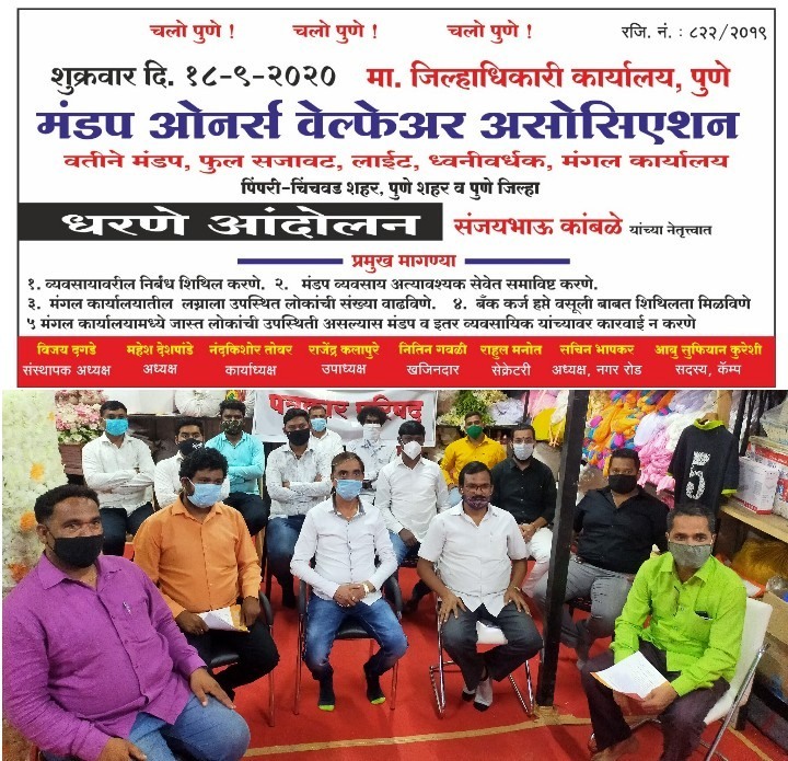 मंडप ओनर्स वेलफेअर असोसिएशनचे उद्या 18 सप्टेबर ला पुणे जिल्हाधिकारी कार्यालयावर अंदोलन – विजय दगडे (संस्थापक अध्यक्ष)