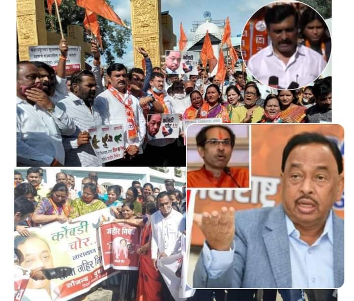 पिंपरी,दि.26 ऑगस्ट 2021(प्रजेचा विकास न्युज प्रतिनिधी):- मुख्यमंत्री उद्धव ठाकरे यांच्या बद्दल अक्षपार्ह व खालच्या पातळी वर केंद्रीय मंत्री नारायण राणे नी वक्तव्य केल्याने संपुर्ण महाराष्र्टात शिवसैनिकांनी राणेंन विरोधात अंदोलन केले,(दि.24 ऑगस्ट)पिंपरी चिंचवड शहरातही अक्रोश अंदोलन करण्यात आले.शिवसैनिकांनी नारायण राणे यांच्या फोटो ला जोडे मारत राणे विरोधात घोषणा बाजी करत अंदोलन केले ‘कोंबडी चोर हाय हाय’ मुर्दाबाद मुर्दाबाद नारायण राणे मुर्दाबाद, एक वडा दोन पाव नारायण राणे भाडखाउ, जिंदाबाद जिंदाबाद शिवसेना जिंदाबाद,या नार्याच करायचं काय? खाली डोकं वर पाय,छक्का छक्का नारायण राणे छक्का,नारायण राणे भडवा हे,उध्दव साहेब आगे बढो हम तुम्हारे साथ हे,ह्या घोषणांनी संपुर्ण पिंपरी चौक गजबजला होता.