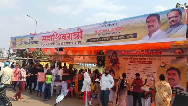 किवळे,दि.०१ मार्च २०२२ (प्रजेचा विकास न्युज प्रतिनिधी):-नगरसेवक मोरेश्वर भोंडवे व सचिन चाय पॉइंट यांच्या संयुक्त विद्यमाने महाशिवरात्रीनिमित्त महाअभिषेक व डमरू आरती,खाकी वर्दीतील गायक बळीराम चव्हाण(महा.पोलिस) व गायक पंढरीनाथ महाराज सुतार यांचा भक्ति संगीतचा कार्यक्रम तसेच माई बाल भवन येथील अंध मुलींच्या संगीताचा व प्रार्थनाचा कार्यक्रम मुकाई चौक किवळे येथे करण्यात आला.महाप्रसाद- खिचडी, उपवासाचा शेव चिवडा, केळी राजगिरा लाडू,चहा व खिचडी,साबुदाणा चिवडा फराळ वाटप करण्यात आले.हजारो भाविकांनी या प्रसादाचा लाभ घेतला.महाशिवरात्रीच्या कार्यक्रमाचे प्रमुख आकर्षण बर्फा पासून दोन शिवलिंग बनवले होते.त्या सोबत फोटो काढण्याचा मोह भाविकांना आणि येणार्या प्रत्येका मध्ये दिसुन येत होता.हा कार्यक्रम गेले सहा वर्षा पासुन सचिन साबळे त्यांच्या चाय पाॅईंट वर मुकाई चौक किवळे येथे करतात.नगरसेवक मोरेश्वर भोंडवे, गणेश भोंडवे, बाळासाहेब गायकवाड, बापू कातळे, निलेश तरस,नवनाथ तरस,नवनाथ लोखंडे,प्रशांत येळवंडे,सचिन साबळे,संतोष म्हस्के,जेष्ठ नेते सुदाम तरस यांनी सर्वांना संबोधित केले. तर यावेळी शितल साबळे, रंजना वाघमारे, रेखा साबळे, रामदास साबळे, सुभाष कडेकर, कमलाकर दांगट ,मोरेश्वर तरस, सचिन बापू तरस,बाळासाहेब झंझाड,दत्ता गायकवाड,विनोद भंडारी,सचिन शिंगाडे,गणेश सलगर,सुरज वाघमारे,ओमकार वाघमारे,अभिषेक आवारे,योगा वाल्मिकी,अतुल घोडगे, विनोद लोंढे,दत्ता जगताप, विक्की सोनवणे, रोहित माने,कमलेश भोसले, संदीप साबळे, यश सुतार, धीरज तंतरपाळे, प्रणव गोरे, अनिकेत वाघमारे आदी पदाधिकारी कार्यकर्ते उपस्थित होते.