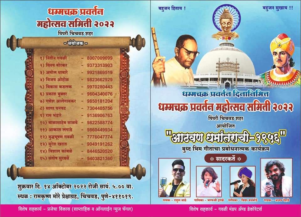 “आठवण धर्मांतराची-1956” धम्मचक्र प्रवर्तन दिनानिमित्त 14 ऑक्टोबर 2022 रोजी होणाऱ्या कार्यक्रमास हजारोच्या संख्येने या व कार्यक्रमाचे साक्षीदार व्हा -विकास कडलक