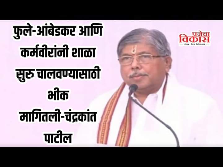 पैठण,दि.०९ डिसेंबर २०२२(प्रजेचा विकास न्युज प्रतिनिधी):-राज्यपाल भगतसिंह कोश्यारी यांनी छत्रपती शिवाजी महाराज यांना जुने आदर्श संबोधलं होतं. त्यांच्या या वक्तव्यानंतर महाराष्ट्रात वादंग उठलं होतं. राज्यपालांच्या विरोधात १७ डिसेंबरला महाविकास आघाडीने मोर्चा देखील आयोजित केला आहे. त्यातच आता राज्याचे उच्च आणि तंत्र शिक्षण मंत्री चंद्रकात पाटील यांनी फुले-आंबेडकर आणि कर्मवीरांनी शाळा सुरु करण्यासाठी भीक मागितली, असं विधान केलं आहे.पैठणमधल्या कार्यक्रमात बोलताना चंद्रकांत पाटील यांनी शाळांना देण्यात येणाऱ्या अनुदानावरून महापुरुषांचा दाखला देत असताना हे वक्तव्य केलं आहे. चंद्रकांत पाटील यांनी संबोधताना म्हटलं की, “कर्मवीर भाऊराव पाटील यांनी शाळा सुरु केल्या. डॉ. बाबासाहेब आंबेडरकर आणि महात्मा जोतिराव फुले यांनीही शाळा सुरु केल्या. त्यांनी शाळा सुरु करताना सरकारने अनुदान दिलं नाही. तर, त्यांनी लोकांकडे भीक मागितली,
