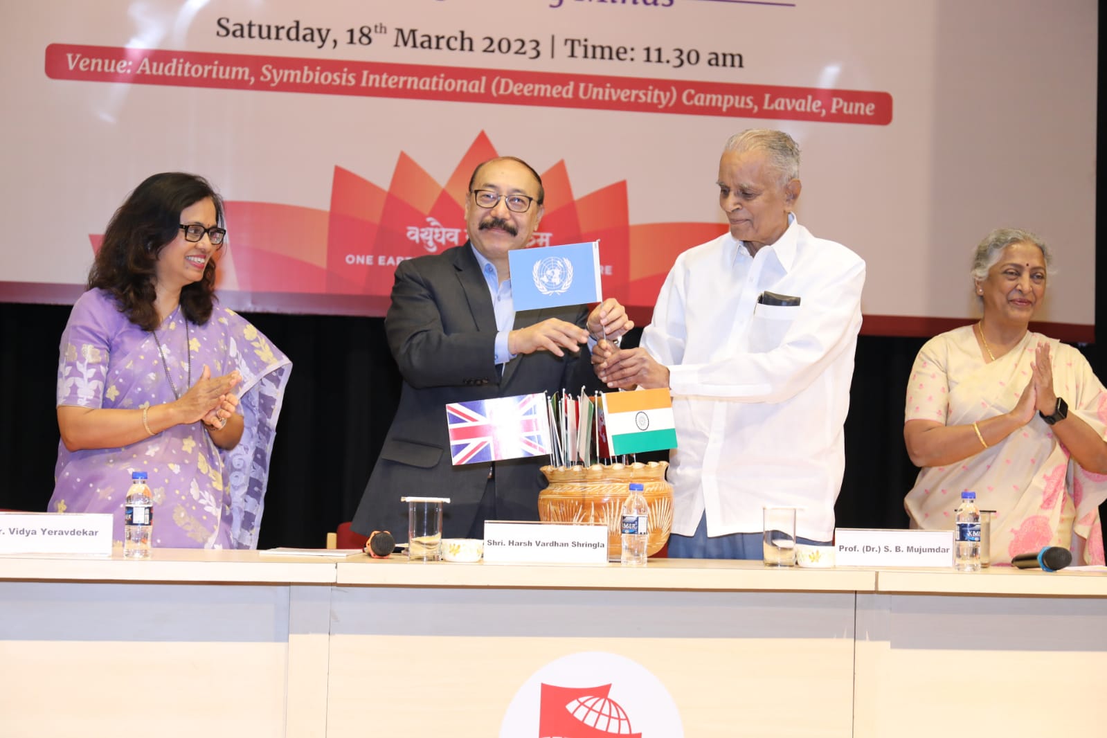 सिम्बायोसिस आंतरराष्ट्रीय विद्यापीठाचे (अभिमत विद्यापीठ) कुलपती प्रा. (डॉ.) एस बी मुजुमदार म्हणाले की, शिक्षण हे आंतरराष्ट्रीयीकरणाचे सर्वोत्तम माध्यम आहे सिम्बायोसिस मध्ये भारतीय आणि परदेशी विद्यार्थी एकत्र राहून परस्परांना सहकार्य करतात असे डॉ.मुजुमदार यांनी सांगितले. सिम्बायोसिसने सुरुवातीपासूनच ‘वसुधैव कुटंबकम’ या ब्रीदवाक्याचे पालन केले आहे जे भारताचे जी 20 अध्यक्षपदाचे बोधवाक्य आहे, असे त्यांनी सांगितले. जी 20 देशांतून येणाऱ्या विद्यार्थ्यांना आणि विद्वानांसाठी 20 शिष्यवृत्तीची घोषणा मुजुमदार यांनी केली.सिम्बायोसिस आंतरराष्ट्रीय विद्यापीठाच्या (अभिमत विद्यापीठ) प्र-कुलपती डॉ. विद्या येरवडेकर यांनी स्वागत केले तर कुलगुरू डॉ. रजनी गुप्ते यांनी आभार मानले.