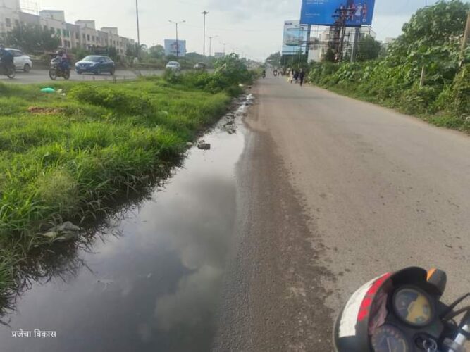 देहुरोड,दि.१६ ऑगस्ट २०२३ (प्रजेचा विकास न्यूज प्रतिनिधी ):- मुंबई- बेंगलोर हायवे लगत विकासनगर किवळे येथे सर्विस रोडवर अनेक दिवसा पासुन होतंय सांडपाण्याच्या घाणीचे साम्राज्य संपूर्ण रोडवर सांड सांडपाणी साचले आहे.डी मार्ट ते शांती निवास – ओम पॅराडाईज लगत असणाऱ्या नाल्यापर्यंत, देहूरोड शिवाजी विद्यालय त्या साईडने वरुन येणारा चेंबर तुंबून त्याचे दुर्गंधीयुक्त सांडपाणी रोडवर येत आहे.त्यावरूनच नागरिकांची गाड्यांची ये जा करावी लागत असून या दुर्गंधीयुक्त पाण्याचा सामना नागरिकांना करावा लागत आहे,अनेक वेळा टु व्हिलर या ठिकाणी स्लिप झाल्या आहेत.