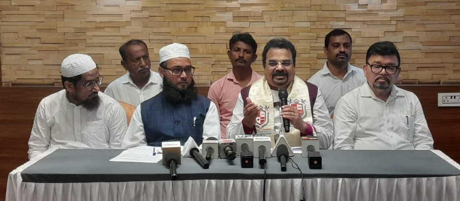 सामाजिक सलोखा ऐक्य परिषदेच्या वतीने बुधवारी चिंचवड येथे आयोजित केलेल्या पत्रकार परिषदेत बिशप सॅम्युअल साखरपेरकर, पास्टर नितीन काळे, शौल विश्वास कांबळे आदींसह विविध समाज प्रतिनिधी उपस्थित होते.