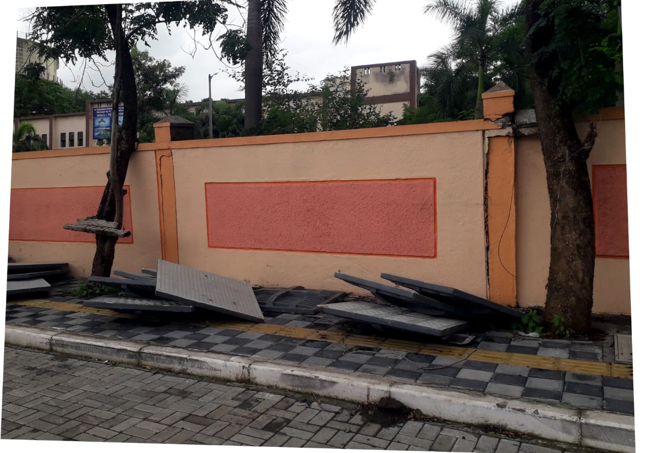 कासारवाडीतील डॉ बाबासाहेब आंबेडकर जलतरण तलावाच्या इमारतीला असलेली सिमा भिंत धोकादायक स्थितीत