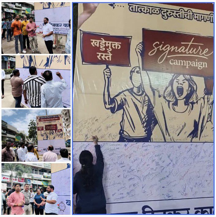 या मोहिमेमार्फत नागरिकांची एकजूट व प्रखर पाठिंबा दिसून आला असून, ही मागणी तातडीने मान्य करून रस्त्यांची दर्जेदार दुरुस्ती करण्यात यावी, अशी ठाम मागणी प्रशासनाकडे करण्यात आली आहे. प्रशासनाच्या विरोधात स्वाक्षरी मोहीम राबवून प्रशासनाचा निषेध नोंदवला जात आहे. याची तरी दखल घेऊन प्रशासनाने त्वरित रस्त्याचे काम करावे अशी मागणी संतप्त नागरिकांकडून करण्यात येत आहे.