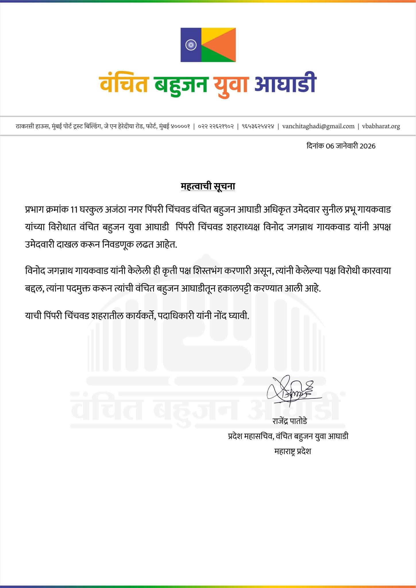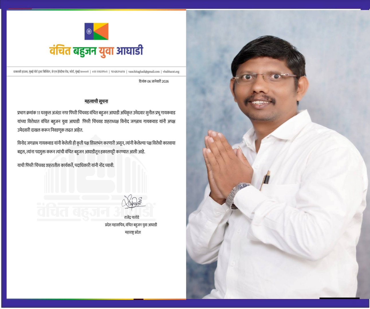 विशेष म्हणजे, शहराध्यक्ष पदावर असताना घेतलेला हा निर्णय कार्यकर्त्यांमध्ये नाराजी आणि संभ्रम निर्माण करणारा ठरला आहे. “पक्ष, चिन्ह आणि अधिकृत उमेदवार यांच्याशी प्रतारणा करणारी ही कृती आहे,” अशी तीव्र प्रतिक्रिया वंचितच्या पदाधिकाऱ्यांकडून व्यक्त होत आहे.