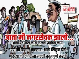नवनिर्वाचित नगरसेवकांनो, प्रभागात प्रजेचा विकास घारीप्रमाणे आकाशातून आणि कावळ्याप्रमाणे जमिनीवरून सर्वांवर नजर ठेवून आहे. कुठेही लफडे, गैरव्यवहार, नंगानाच झाला.तर तो लगेच उघड होणार आहे. आजच्या काळात सत्य लपवता येत नाही; फक्त उघड होण्याची वेळ ठरलेली नसते.